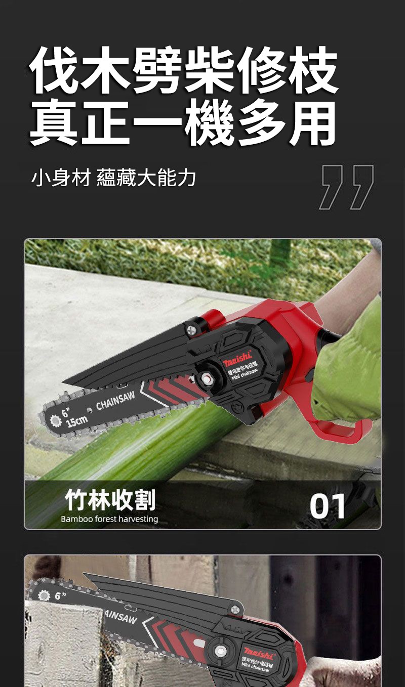 15分鐘前伐木神器登場【整機全新升級】德國MAISHI鋰電鏈鋸 單手操作 輕巧暴力 新品下殺僅NT$1380 - 【旗艦款】6寸電鏈鋸【9900Vf 一電一充】+鏈條*1
