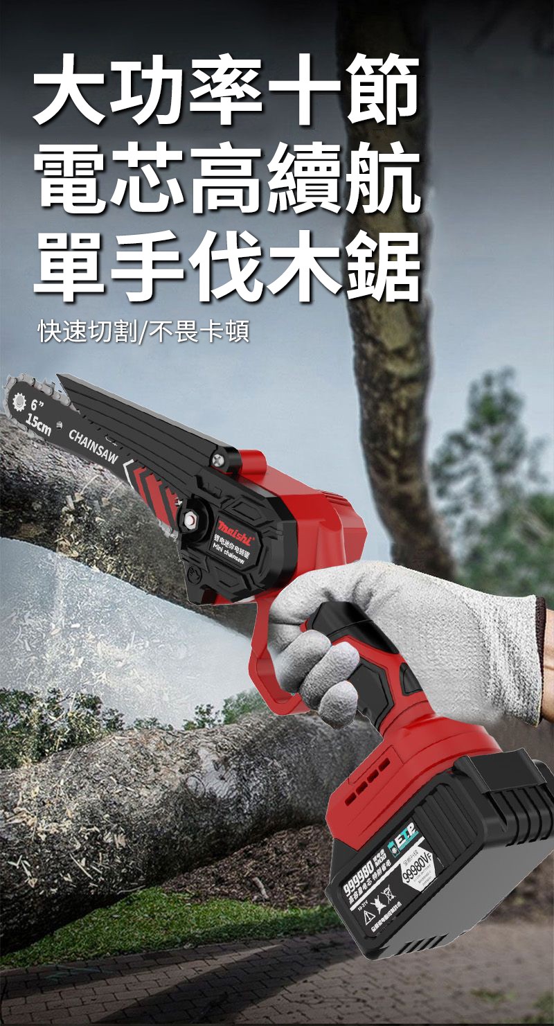 2分鐘前伐木神器登場【整機全新升級】德國MAISHI鋰電鏈鋸 單手操作 輕巧暴力 新品下殺僅NT$1380 - 【旗艦款】6寸電鏈鋸【9900Vf 一電一充】+鏈條*1
