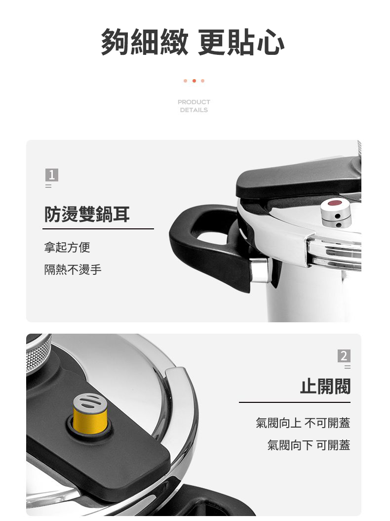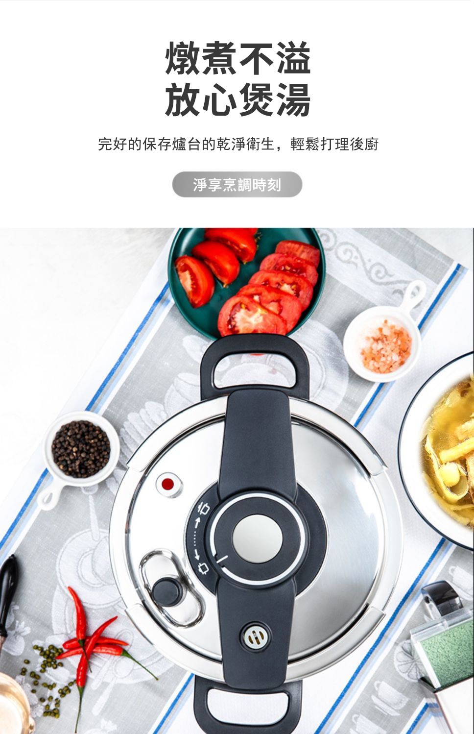 半小時前德國進口304不鏽鋼壓力鍋|燃氣電磁爐通用|安全升級限壓閥|燉肉煮飯熬粥一鍋搞定 - 升級版八重保護304不鏽鋼重力閥6L強力壓力鍋(3-6人)NT$2580