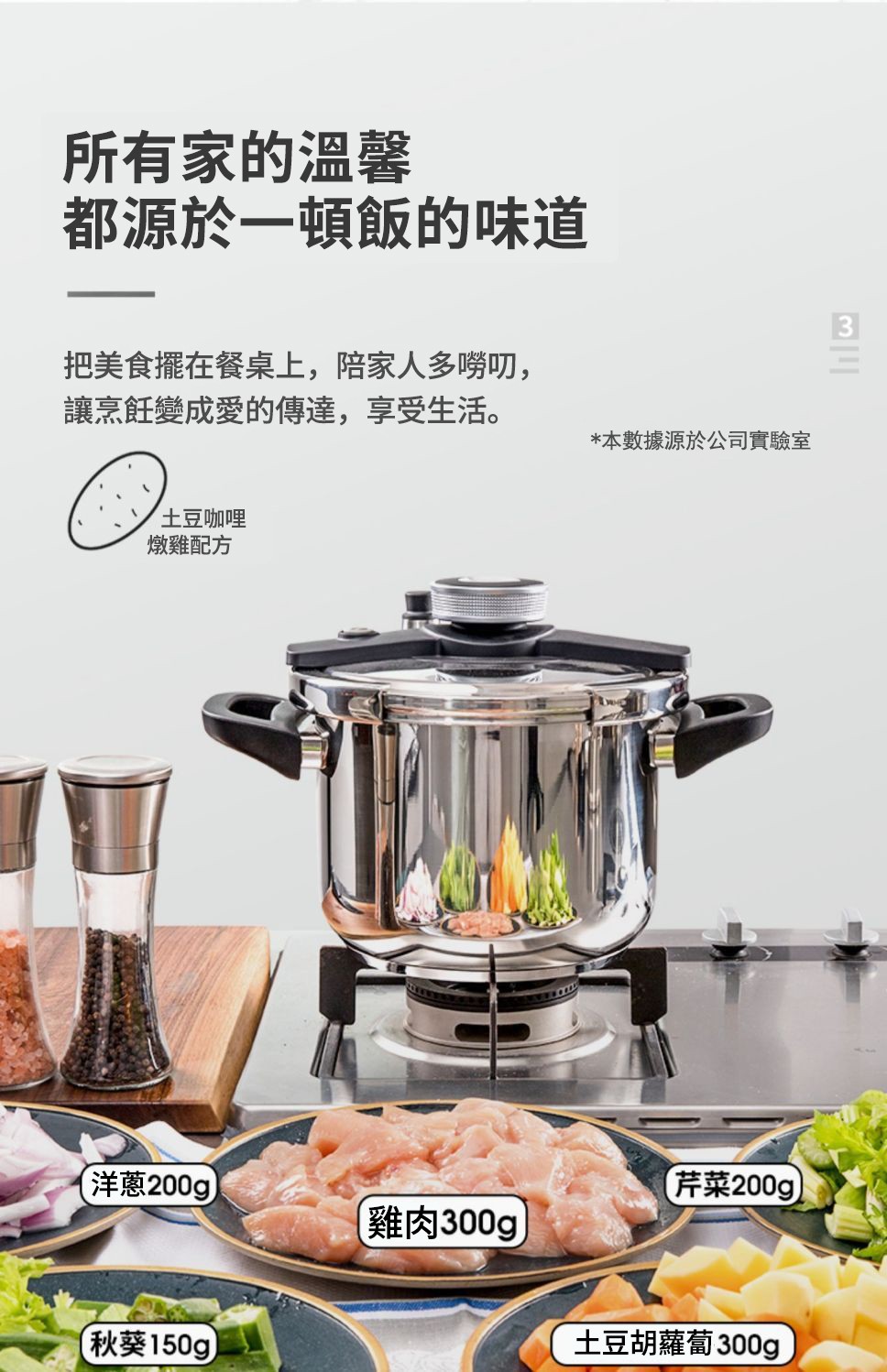 20分鐘前德國進口304不鏽鋼壓力鍋|燃氣電磁爐通用|安全升級限壓閥|燉肉煮飯熬粥一鍋搞定 - 升級加厚 6L【適合1-4人使用】304不鏽鋼壓力鍋 NT$2680