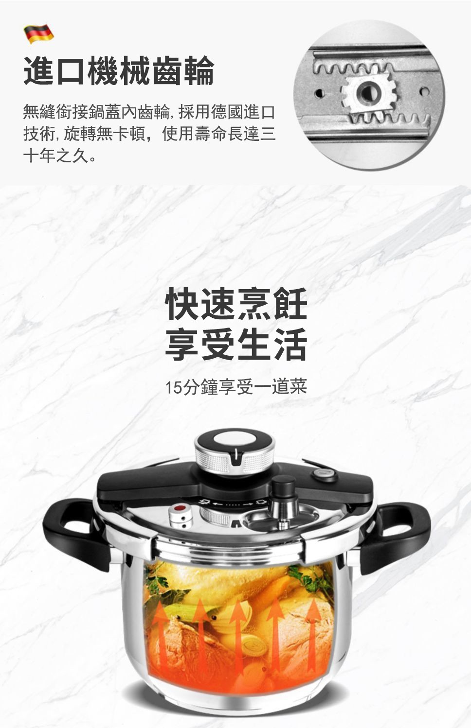 7分鐘前德國進口304不鏽鋼壓力鍋|燃氣電磁爐通用|安全升級限壓閥|燉肉煮飯熬粥一鍋搞定 - 升級加厚 6L【適合1-4人使用】304不鏽鋼壓力鍋 NT$2680