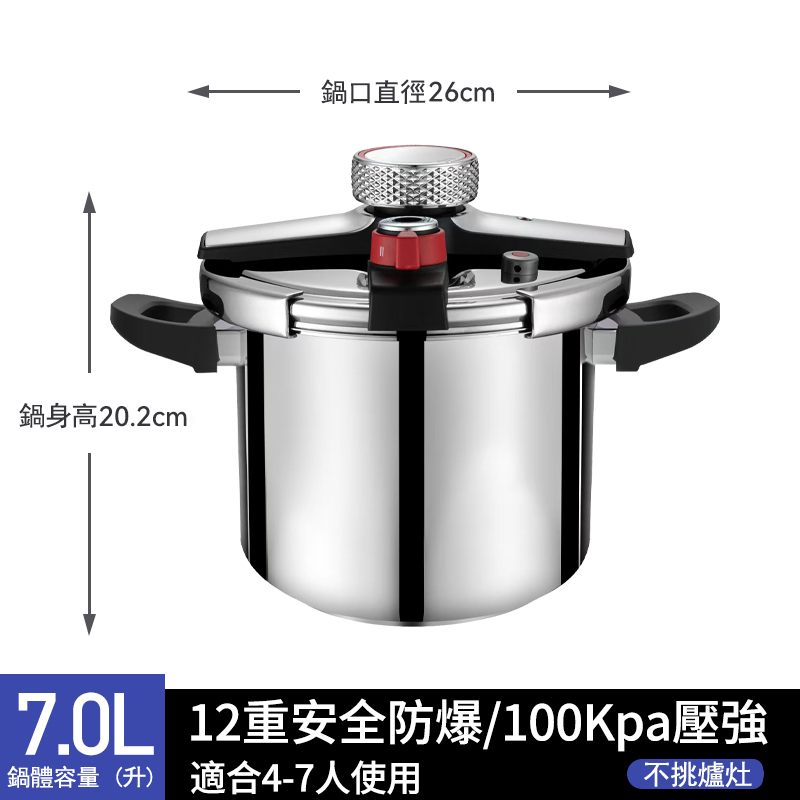 4分鐘前德國進口304不鏽鋼壓力鍋|燃氣電磁爐通用|安全升級限壓閥|燉肉煮飯熬粥一鍋搞定 - 升級版八重保護304不鏽鋼重力閥7L強力壓力鍋(4-7人)NT$2780