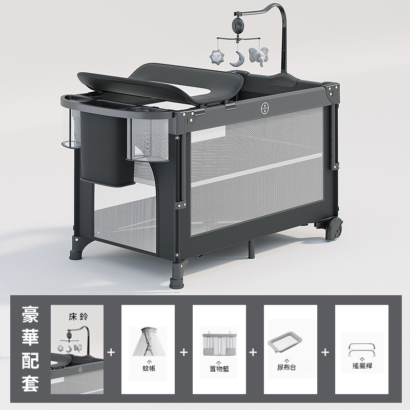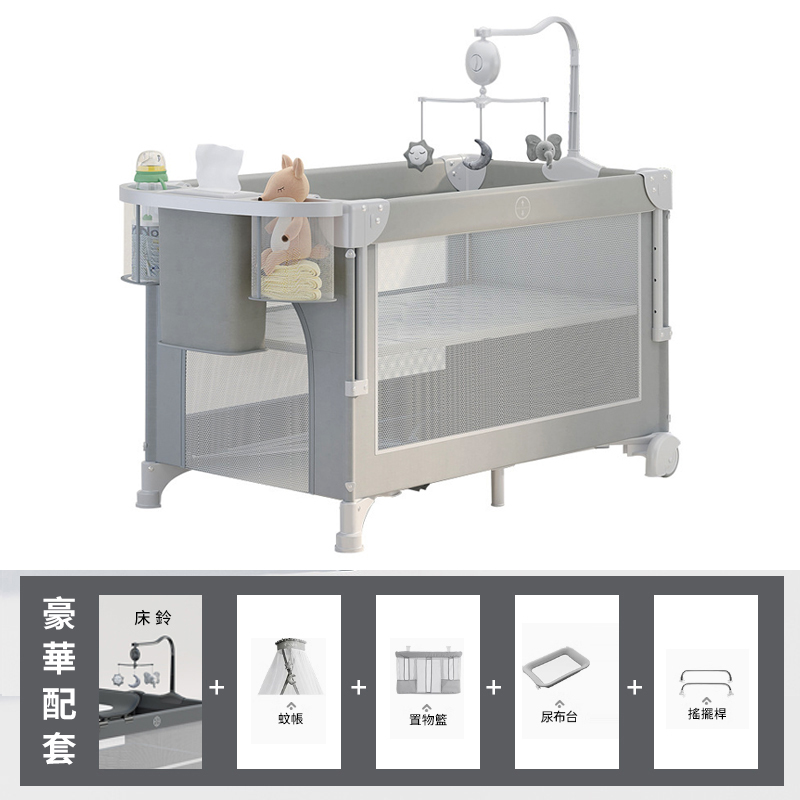 2分鐘前寶寶的專屬空間=床+尿布台+遊戲區,一床三用超實用!【德國寶媽超愛の雙層可折疊嬰兒床】可調高度、可擦拭、免安裝!多功能遊戲嬰兒床一次搞定! - 【豪華款】雙層遊戲拼接升降床+5件組--NT$5180