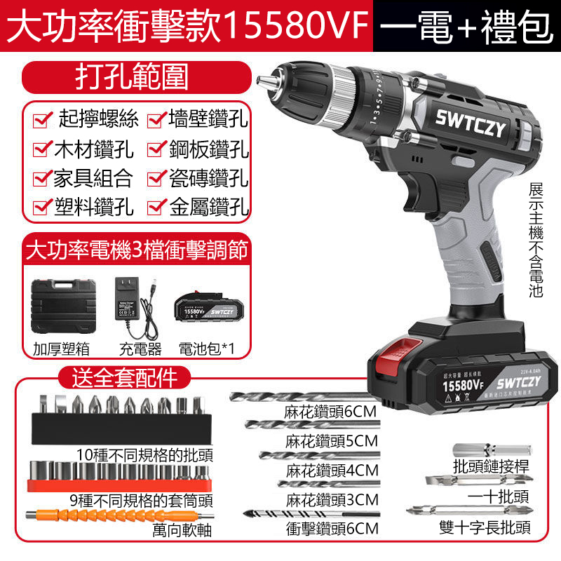半小時前德國大功率 雙速衝擊鋰電鑽 純銅電機 無極變速 雙軸承設計 十年換新 - 進口衝擊15580VF塑箱2電+豪禮 NT$1980