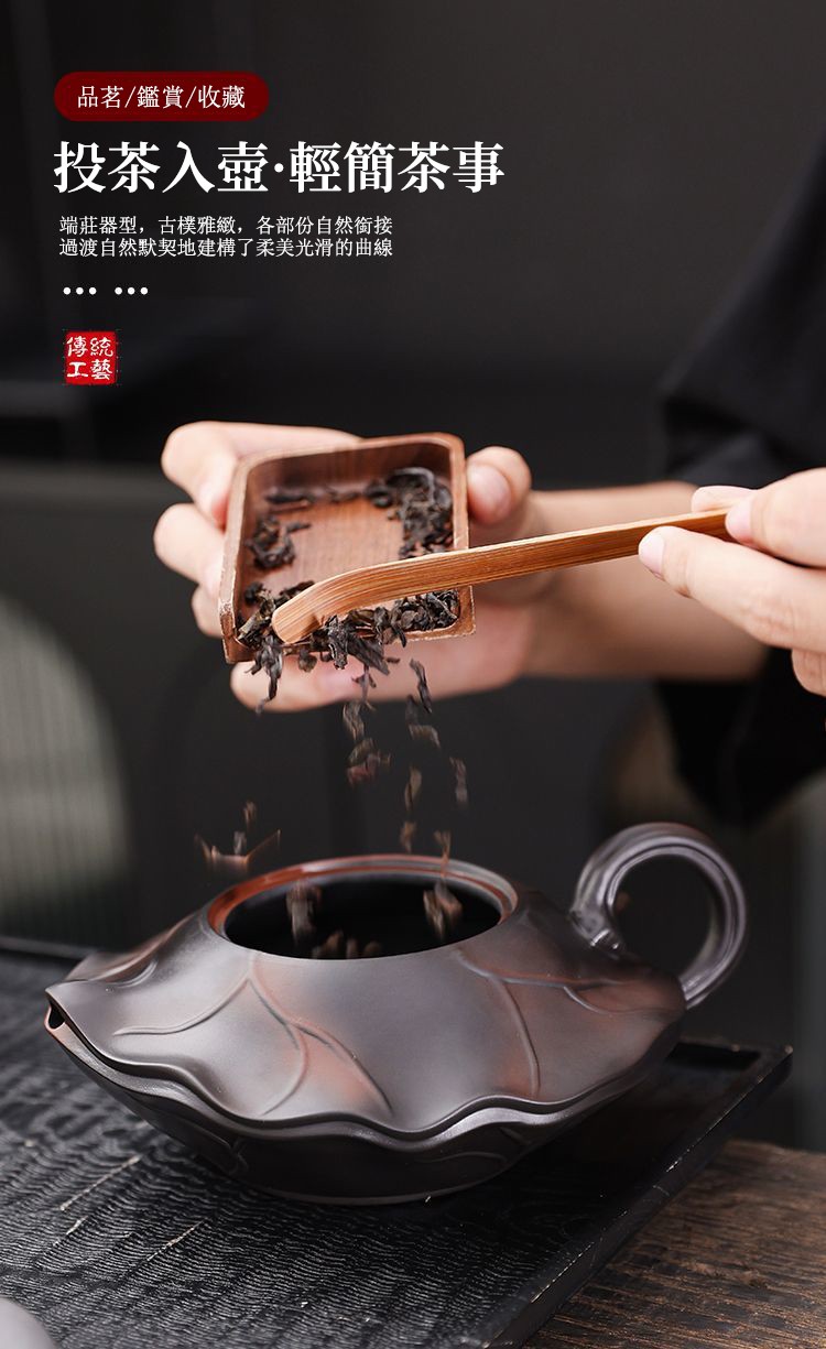 半小時前正宗原礦紫陶浮雕富甲天下荷韻 • 荷花壺┃350cc大容量紫砂鳳鳴壺 純手工大師范明偉匠心之作,泡茶更醇香! - 段泥鳳鳴愛蓮壺