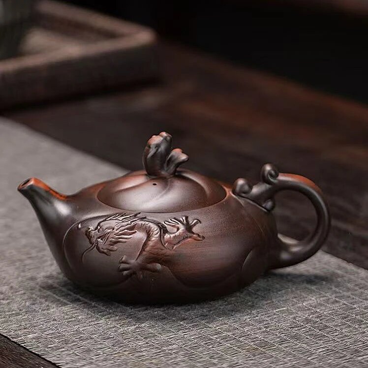 15分鐘前正宗原礦紫陶浮雕富甲天下荷韻 • 荷花壺┃350cc大容量紫砂鳳鳴壺 純手工大師范明偉匠心之作,泡茶更醇香! - 紫陶魚化龍鳳鳴壺