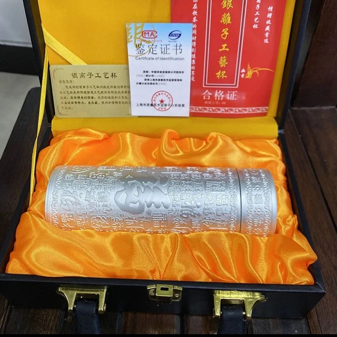 國際很多成功人士,包括壹些醫生之前找我們銀匠師傅定制了這款九龍銀杯,用它喝水可以清洁水質,有益健康,是保健養生好伴侶。杯子上面的九條龍是有靈性的,可以帶來好運,普通人堅持長期使用不但能保健養生,生意也會變得興隆