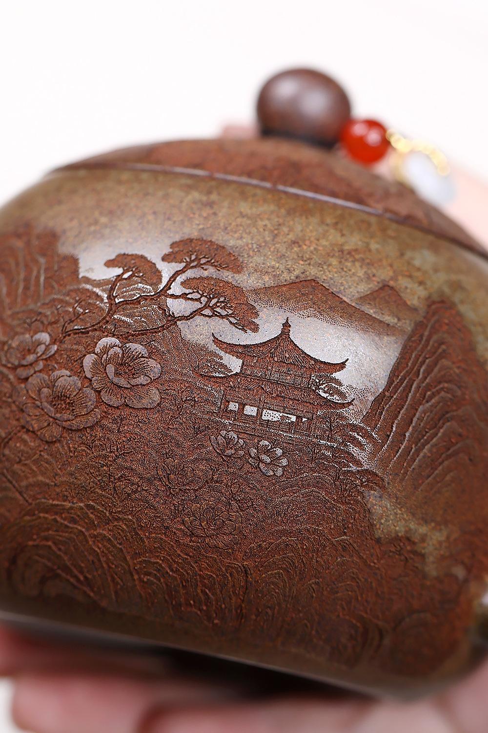經典傳承・匠心打造|【大師純手工紫陶鳳鳴壺】復古跳刀紋漢瓦壺(一壺兩杯)・黃金大容量300cc + 球孔過濾,鳴音設計顯格調