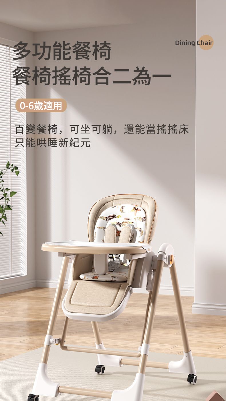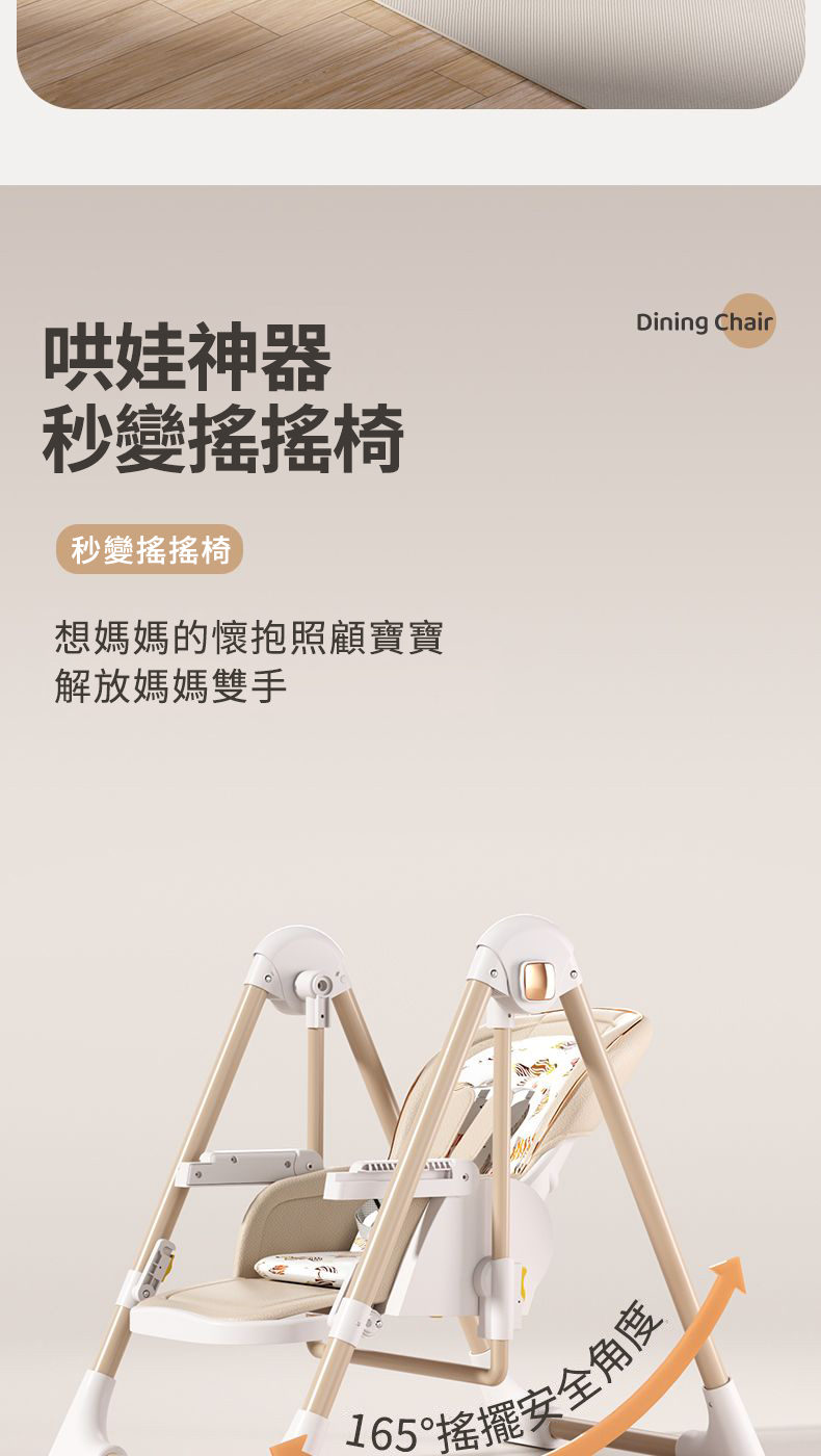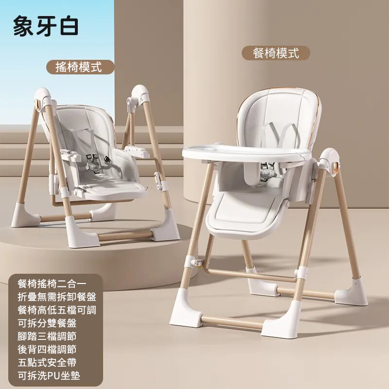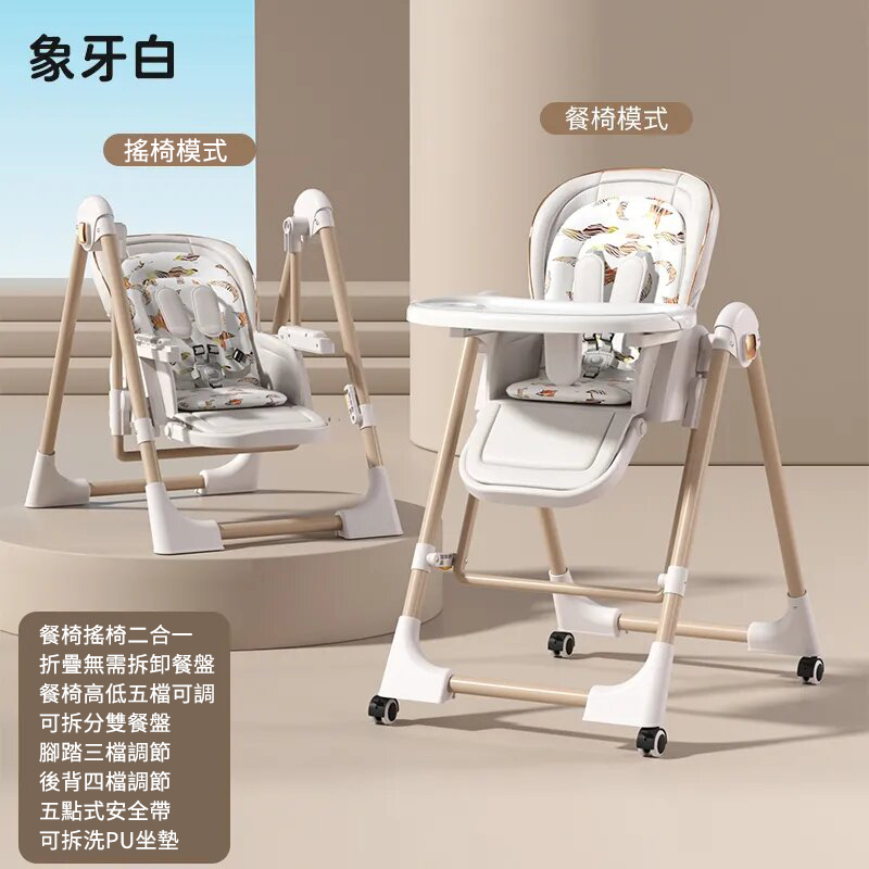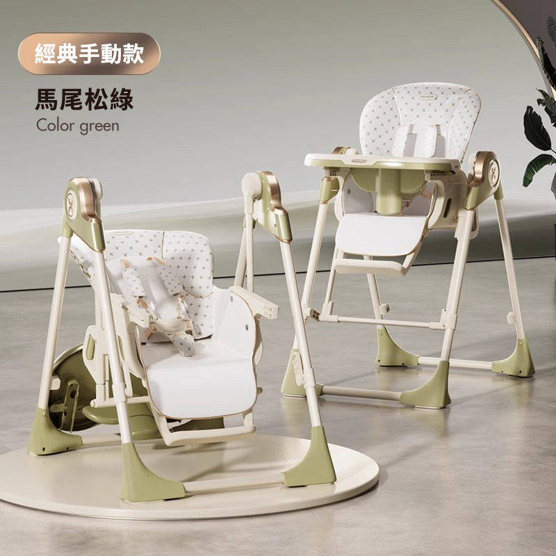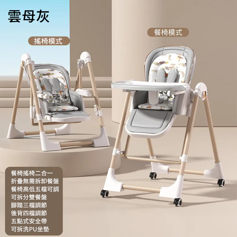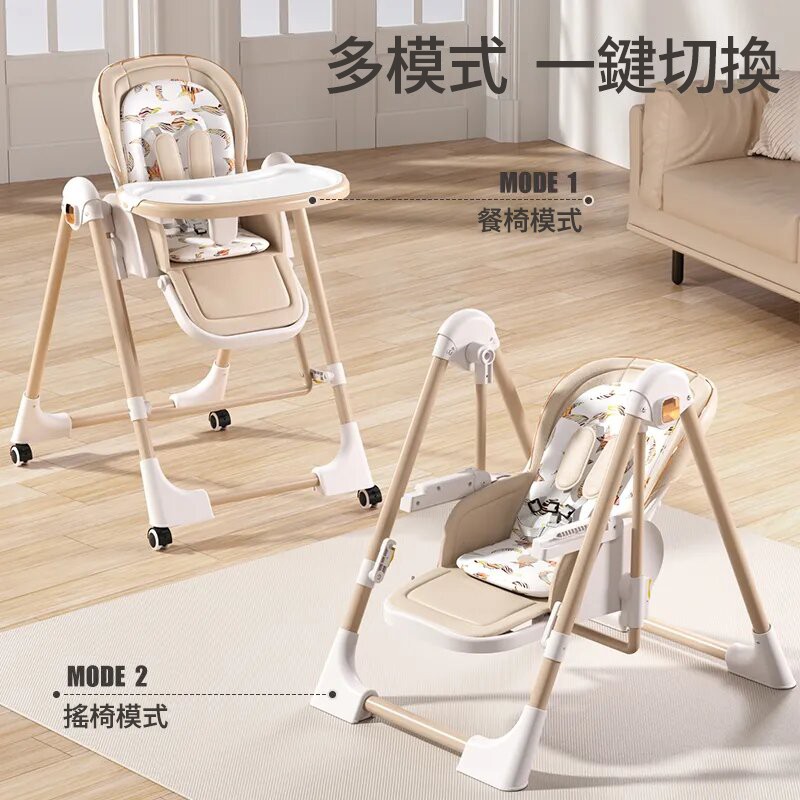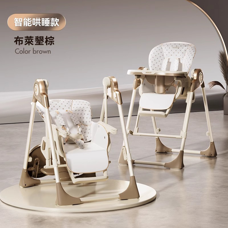 既是搖床又是餐椅【0-6歲寶寶可用】智能哄睡可坐可躺の百變餐椅,高矮調節,165°搖擺安全角度