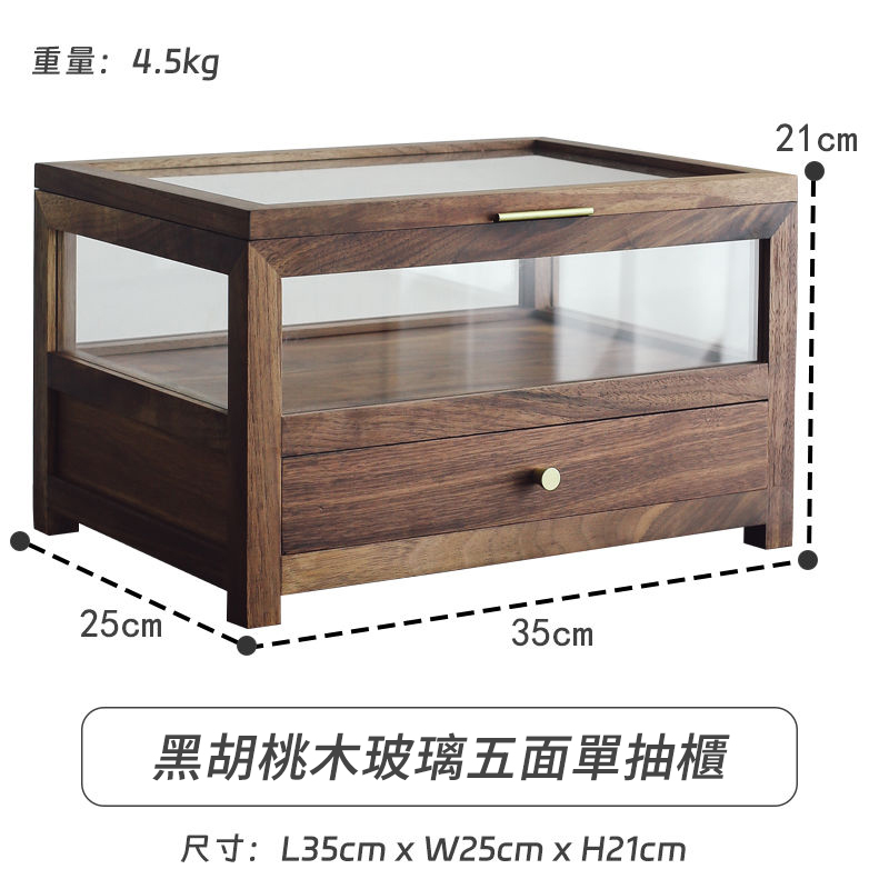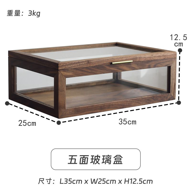 25分鐘前「純手工匠製」胡桃木製作桌面博古架 ,節省空間 大氣典雅的茶具置物架 - 黑胡桃木-五面玻璃盒