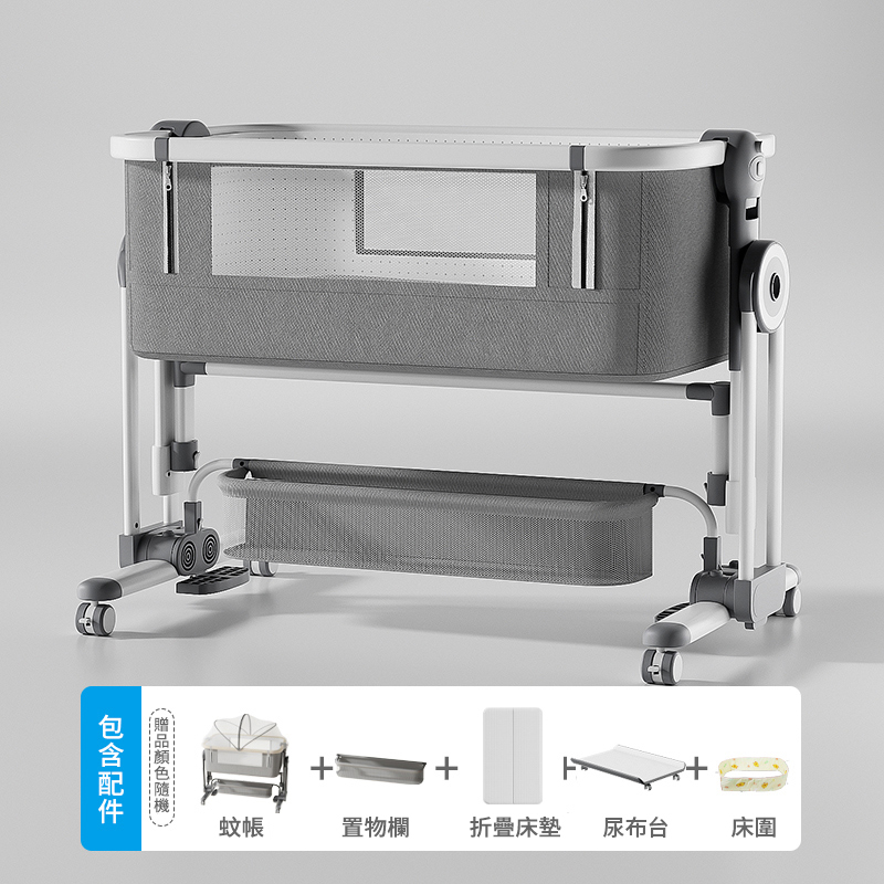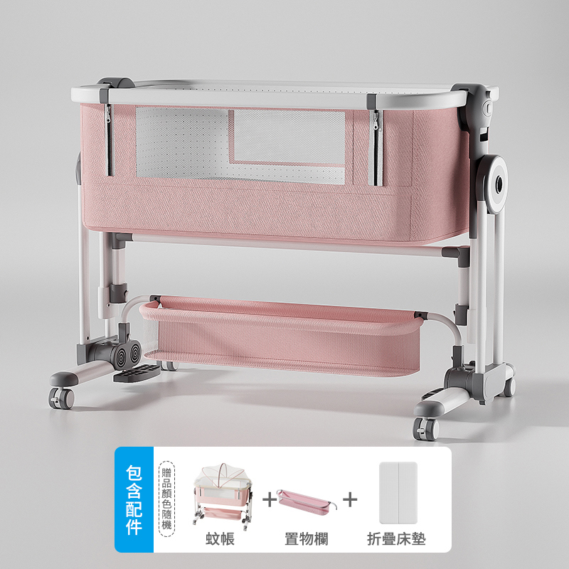 20分鐘前熱銷萬台!【寶寶的專屬空間】免安裝可折疊多功能嬰兒床,一床多用可移動、可搖擺,輕鬆拼接大床陪睡! - 【尊享款】床墊+置物籃+蚊帳+尿佈台+床圍