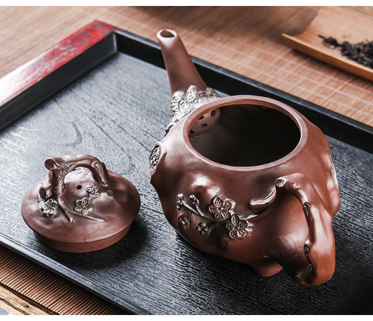 25分鐘前✩ 絕版收藏!正宗宜興紫砂朱泥長嘴供春壺 ❘ 黃金大容量500cc ❘ 純手工浮雕匠製,泡茶更香 - 紫砂朱泥長嘴供春壺500cc