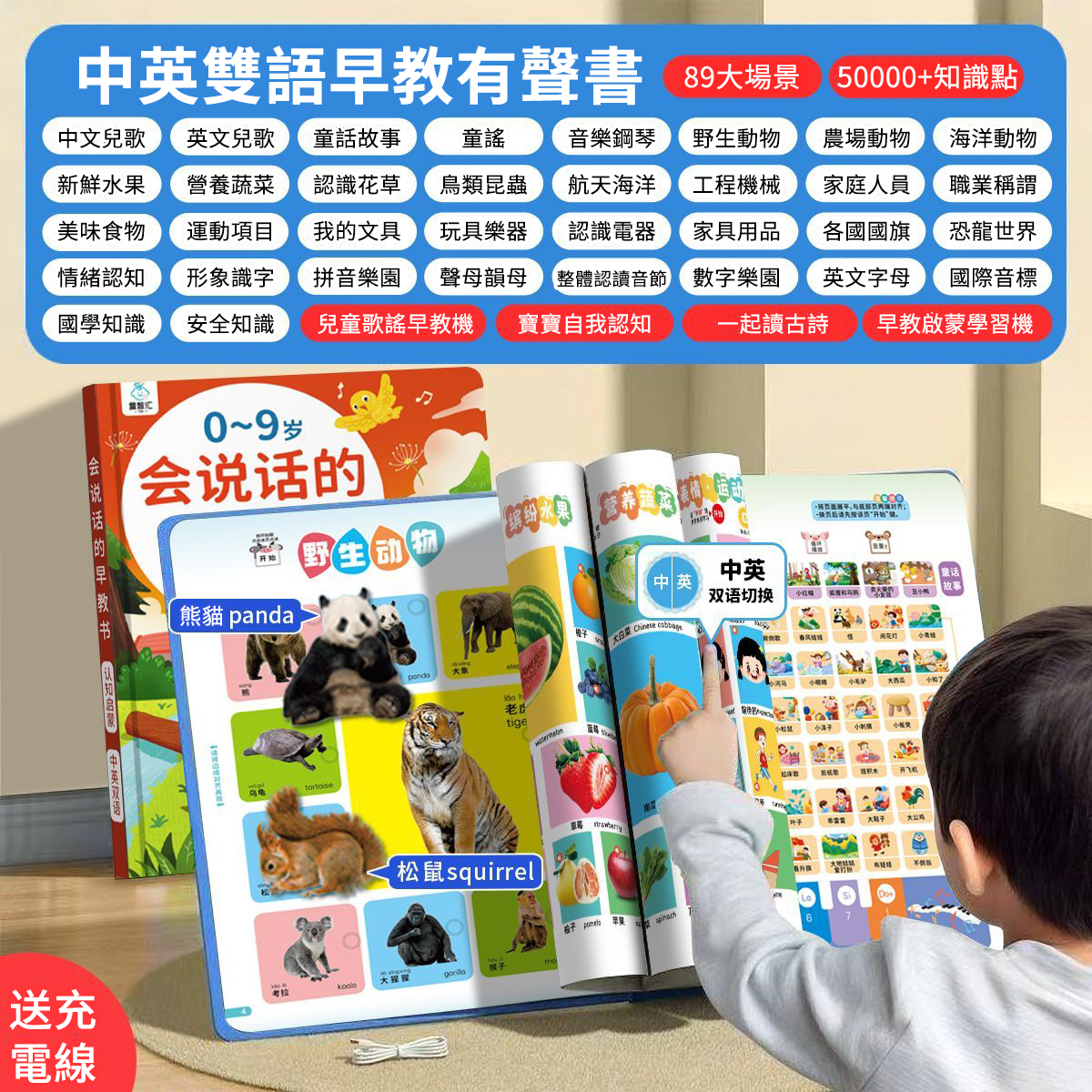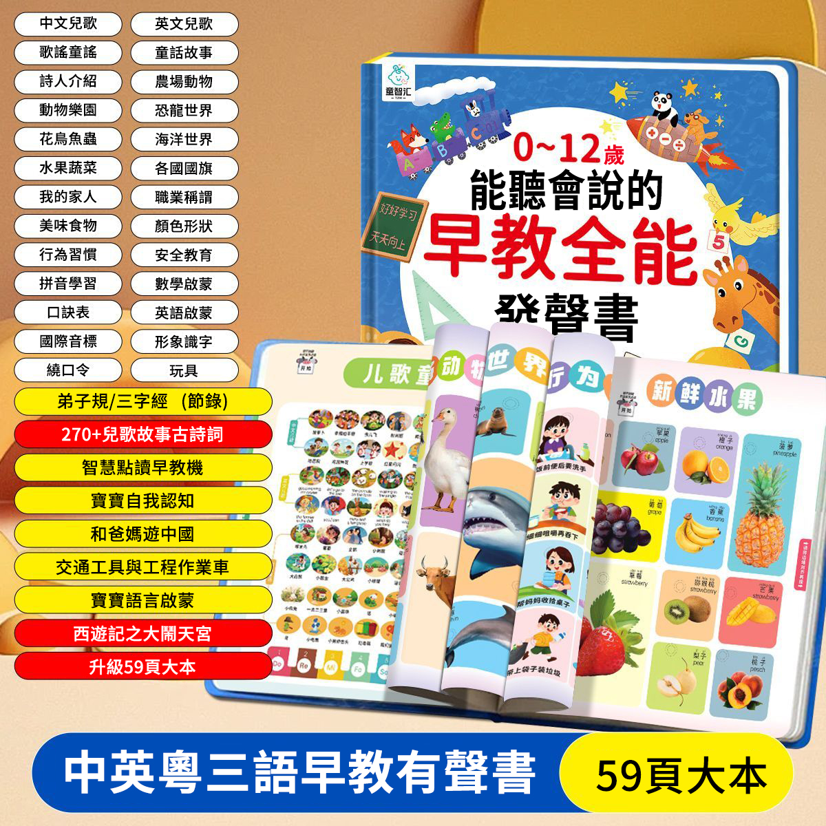 15分鐘前【二年質保 I 防水耐斯】會說話的早期教育有聲書0-12歲中英粵三語兒童早期教育啟蒙學習手指點讀書(送充電線) - 常規款【啟蒙早教】15主題800內容